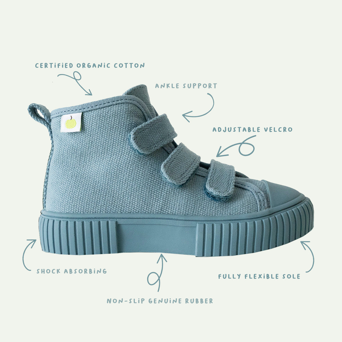 Every pair of Mini Mela Sneakers has a removable insole. This insole has been designed to help support the child’s foot with a zero drop design, but also able to replace with a personalised orthotic if needed.